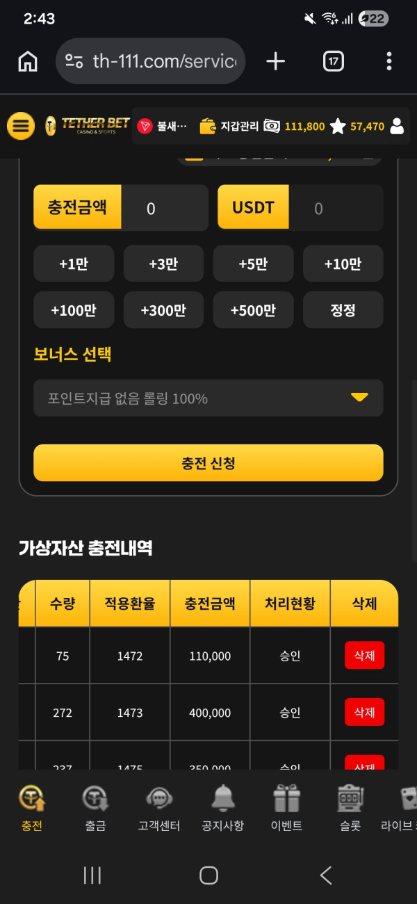 테더벳 포인트 팡팡 퍼주는데 아무도 이용안하나요